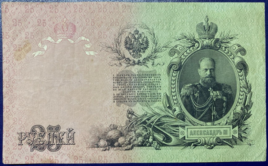 Предложу лот - 25 рублей 1909 года,Российская Империя. отличная купюра. Состояние на фото.