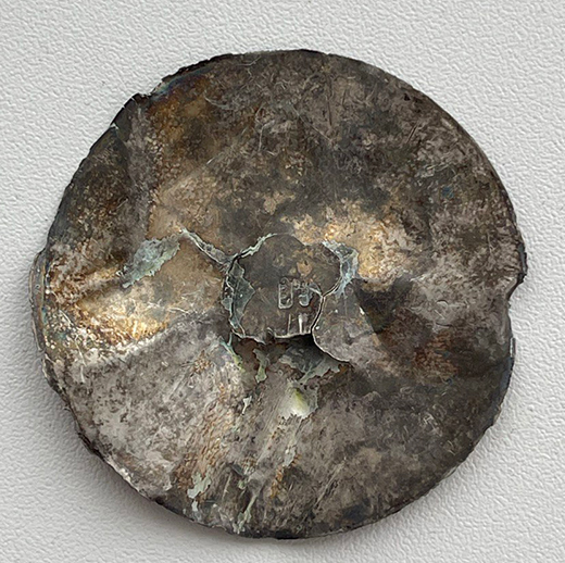 Помогите определить находку, похожа на накладку. Тонкая. Вес 3.47 метал хз, но не медь. -------------------- Огромная просьба после выигрыша торгов связываться со мною в личке...