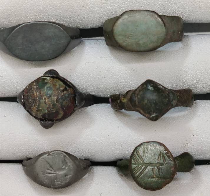 Перстни. 2 гладкощитковые белая бронза орда.2 перстня салтовский культуры. 2 с птицами,один белая бронза. 2 псевдогеральдика. 1 вставка бусина. 1 Адам и Ева. Старт 750, шаг 50, антиснайпер, почта на получателе.