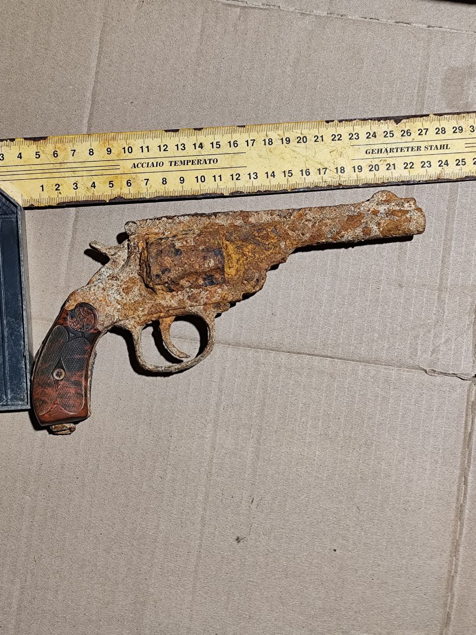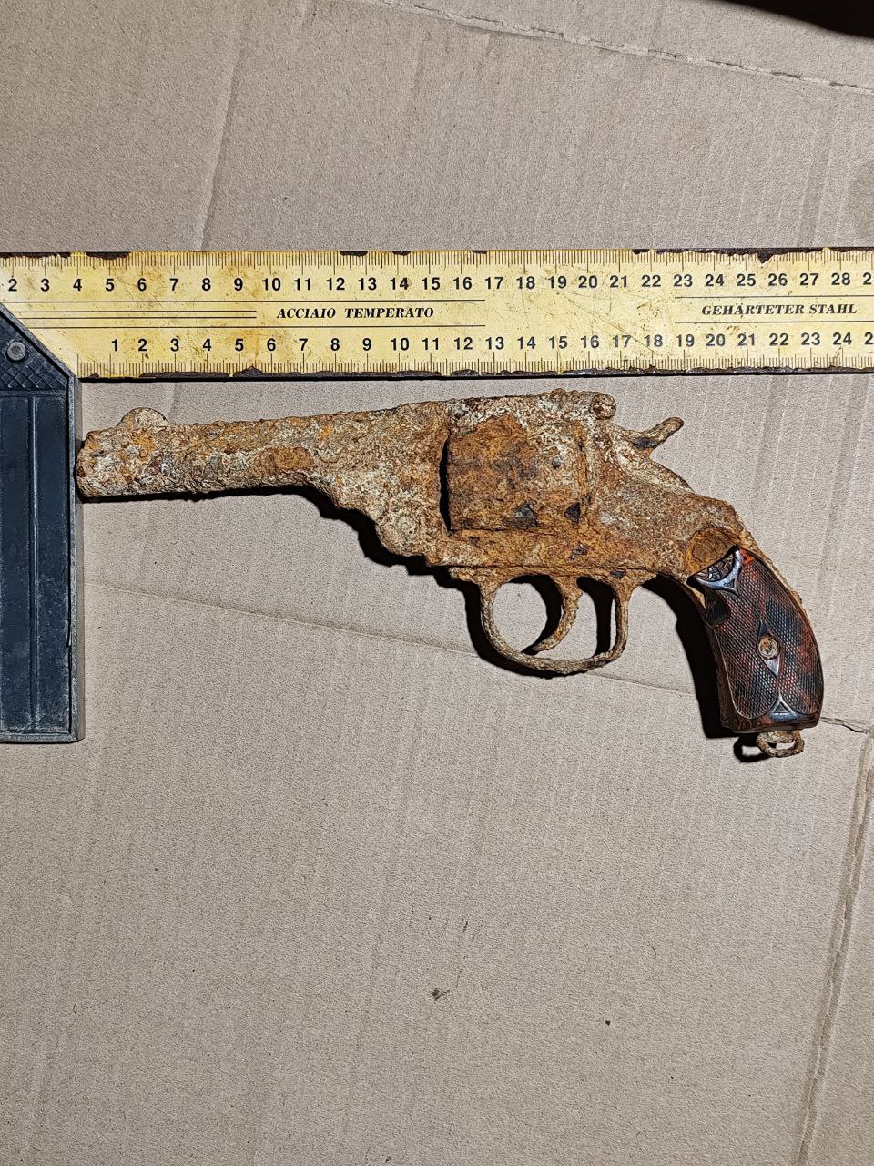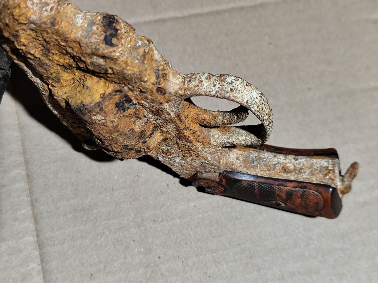 1. Кольцо очень редко, но встречается. Или его могли просто поставить на оригинальный Смит-Вессон в мастерской. Тем более, что кольцо в стиле правильного С-В кольца (насколько это можно разглядеть по этим останкам); 2. Спусковая скоба - таже история. Револьвер может быть правильным С-В, просто винт выкрутился, вот скоба и вылезла. Или ржа отжала. А может родную повредили и поставили самопальную не в размер родной... Рукожопный ремонт из непойми каких деталей встречается постоянно; 3. Спусковой крючок. Всё тоже самое - может ржа съела все родные характерные признаки, а может самопальный ремонтный... там хрен поймёшь, с той ржавчиной. Блин, ну очень убитый предмет. Сообщение отредактировано VVL-Резервный: Сегодня, 14:50 |