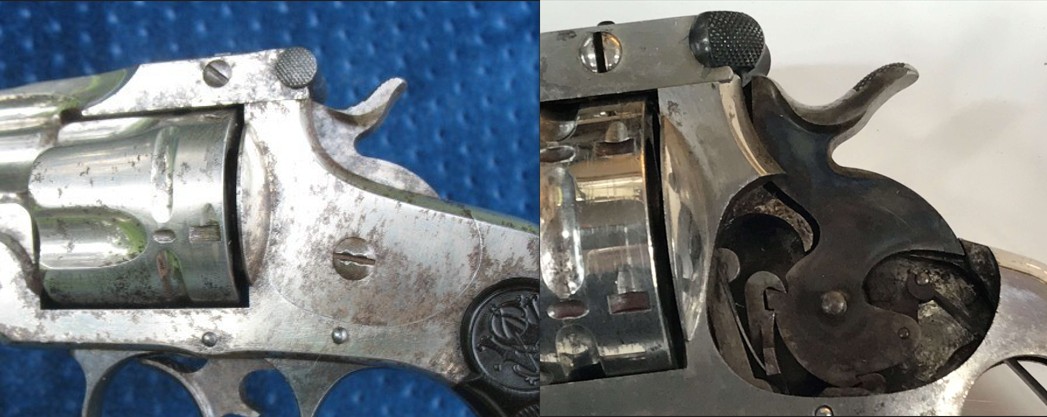 1. Рамы оригинальных Смит-Вессонов имеют боковую крышку. Фирмы копировавшие образ, этим не заморачивались и в 99,999% случаев такой крышки на их рамах нет. Попробуйте почистить и разглядеть шов - крышка есть, тогда есть высокий шанс, что это Смит-Вессон. 2.Снимите щёчки с рукояти. Копии довольно близко повторяли внешний вид оригинального Смит-Вессона, а вот раму внутри - не заморачивались. По обработке рамы под щёчками тоже можно что-то прикинуть. Вложенные эскизы изображений |