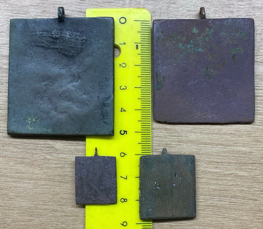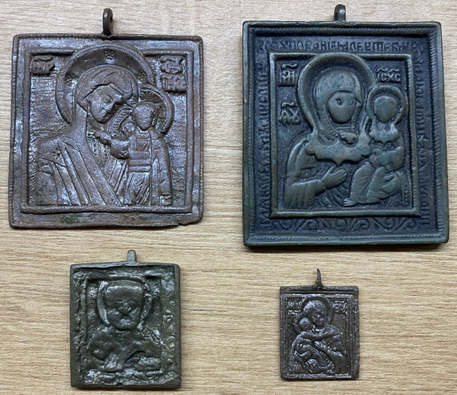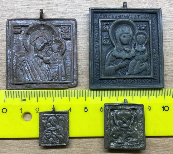 Предложу лот - 4 иконы Богородица Казанская, Богородица Смоленская, Богородица Владимирская, Святитель Николай Выговские .Бронза. 18 века. Состояние и размеры на фото. Любые фото по просьбе вышлю в личку.