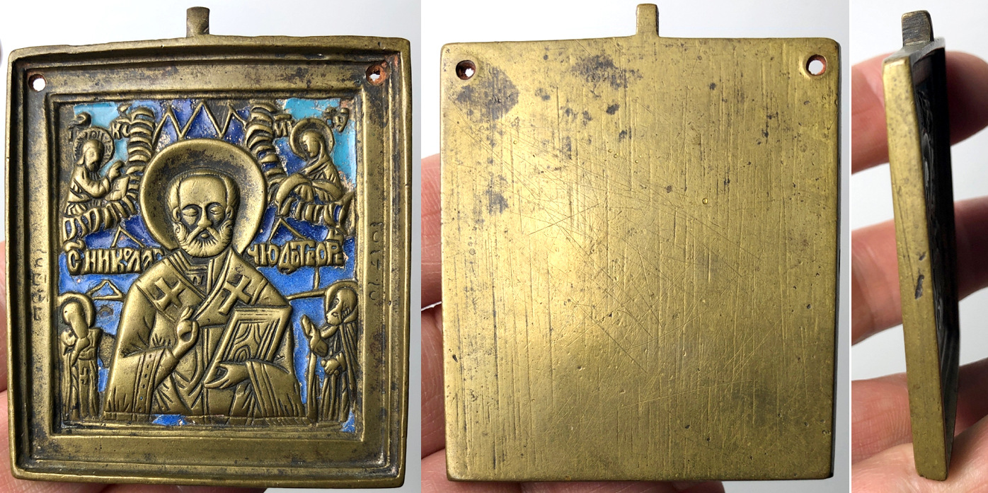 Иконка Николай Чудотворец. размер 5,8х5,3 см. без ушка. Две дырки.