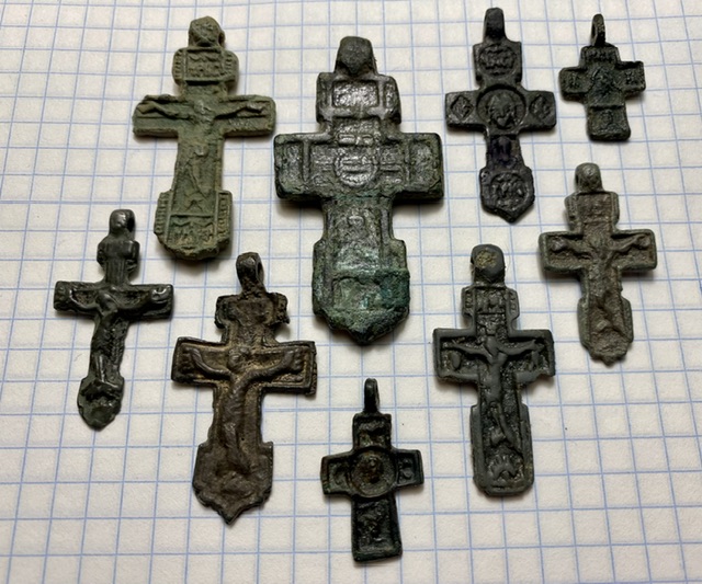 Повторно выставляю большой и «мощный» крест со Спасом 15 в. В оглавии сохранилась верёвочка для ношения прежнего хозяина. Плюс бонус, крестики этого же периода. Старт: 500 шаг - 50 + Блица нет. Антиснайпер 10 мин., многократно. Оплата: карта СБ. Доставка: почта России, по чеку. p.s. Причина удаления лота - нарушение правил (поздно внёс поправку про антиснайпер). Прошу прощения у всех участников «прошлых» торгов… Вложенные эскизы изображений -------------------- систем+