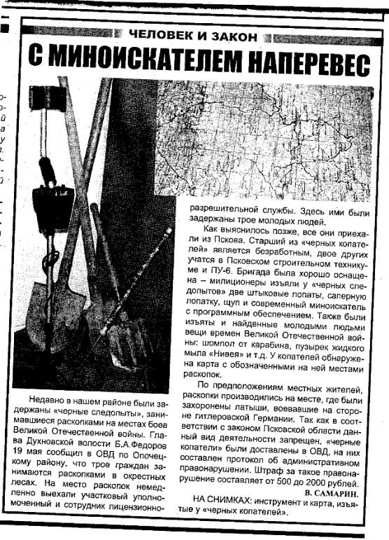 QUOTE(=TOXA= @ Jun 10 2010, 18:44) Поржал! Поржать то можно, но бригада была действительно хорошо оснащена... Ментам дико повезло, что черные копатели не оказали сопротивление, наверное их наградят... -------------------- Ища копейку,..