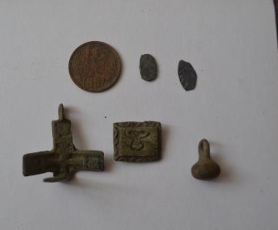 QUOTE(Waeda @ Apr 15 2013, 22:05) Отчет!!! Есть места, где количество снега отличается. Как я понимаю это солнце, ветер и самое главное почва. Первое место, где я побывал - суглинок. Верхний слой оттаял, образовав грязь, а под ним, в 5 -7 сантиметрах мерзлая земля или лед. Копать нереально, лопата отскакивает как от бетона. Второе место - песчаник, между сосен и елочек. Копать приятно, но находок практически нет, если не считать старенькой пряжки от ремня (медная, самодельная). По первому месту нашел: 1. Пуговица - медная, старая. Лежала на грунте, под небольшим снегом. 2. 5 копеек СССР 1945 года. Сохран был отличный, но саданул лопатой, когда из мерзлого грунта выковыривал. Но, несмотря на все неудобства день удался - я взял прибор в руки!!! По крайней мере для меня зима кончилась, и это замечательно! Пятачок 45-го? Монетка то не такая уж частая... С открытием! -------------------- Ища копейку,..