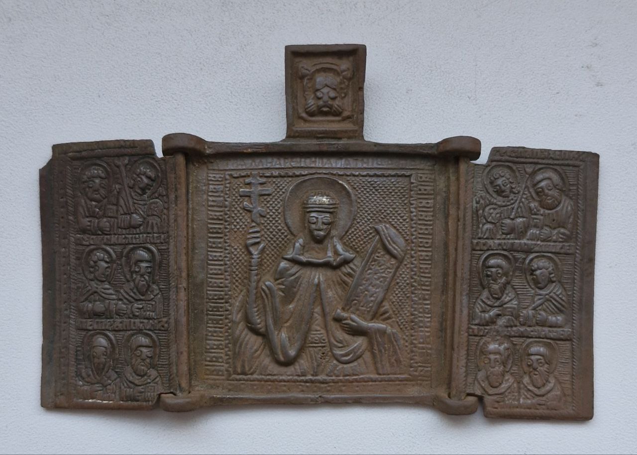 Предлагаю складень Праскева - медный сплав, литье. Размер: 6.00 см. х 9,3 см. Состояние на фото. Старт 1000 рублей. Шаг 50 рублей и выше Оплата - предоплата на карту СБ. Отправка только по РФ Стоимость отправки 350 руб. 1 классом прибавляется к цене выигранного лота. Отправляю в течении 3-х рабочих дней с даты оплаты. Всем удачных торгов! Вложенные эскизы изображений -------------------- Если я выиграл Ваш лот, пожалуйста сообщите в личку. С уважением,