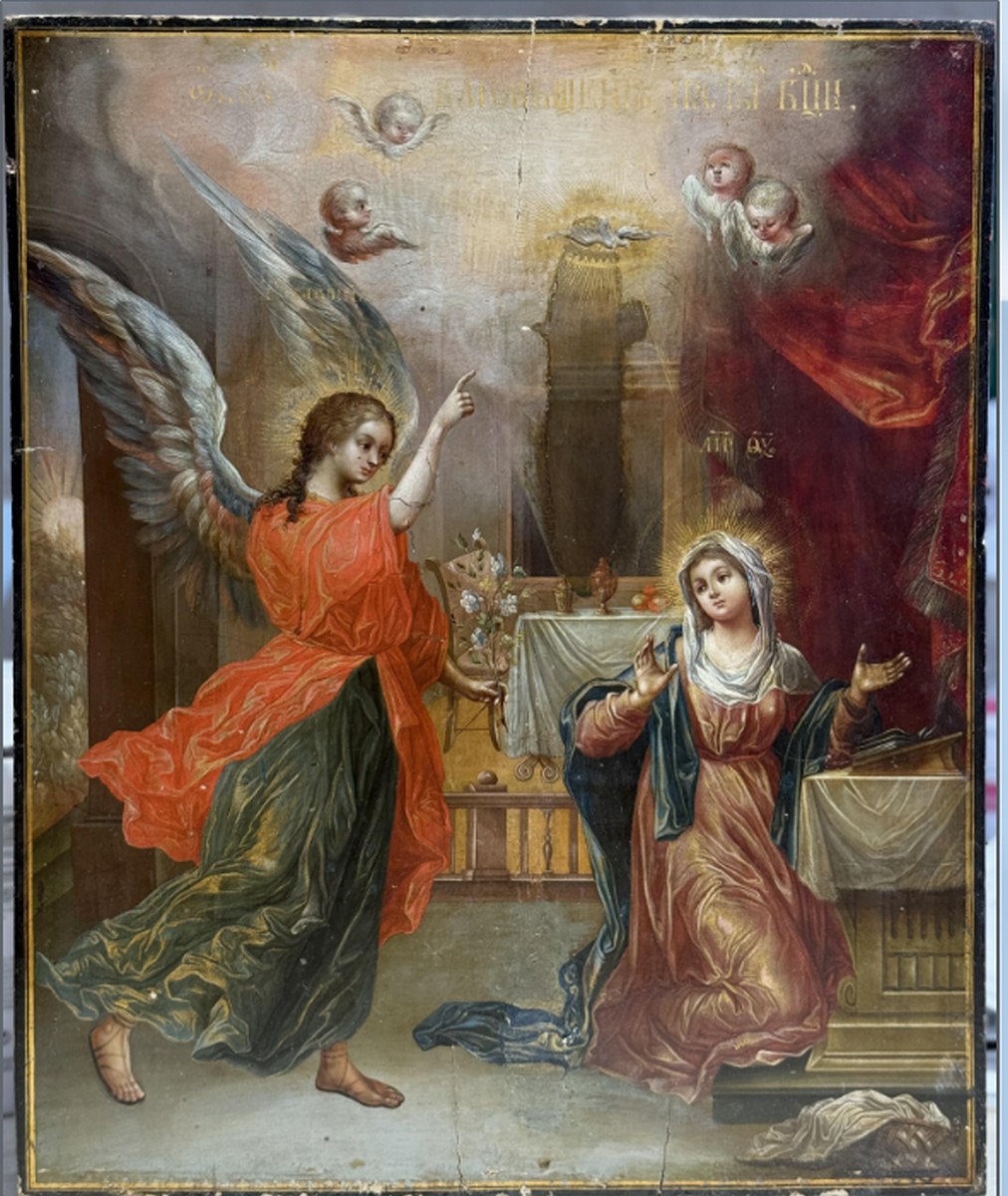 Начинайте с 30000 рублей из за трещины и утрат местами живописи.