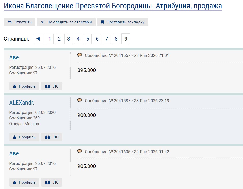 QUOTE(Antik.rest. @ Jan 22 2026, 19:53) Сельская живопись уже до таких цифр дошла?В идеальном состоянии наверное 100К тогда? Отстали Вы от жизни, вот идеальное состояние и сюжет тоже в первой пятерки, как и Чудо о Георгии. Под 1000000 цена и еще торги не закончилисьВложенные эскизы изображений -------------------- С уважением ко всем! (оса)