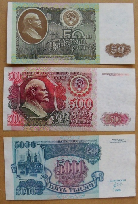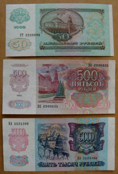 Предлагаю вашему вниманию 3 купюры 1992 г. 50-500-5000 р.
