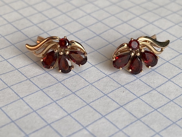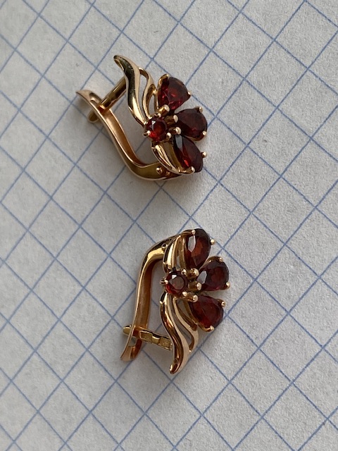Серьги с натуральным гранатом 585 новые ,6200-гр.(13100)Почта-150з.п. 250-1 кл.