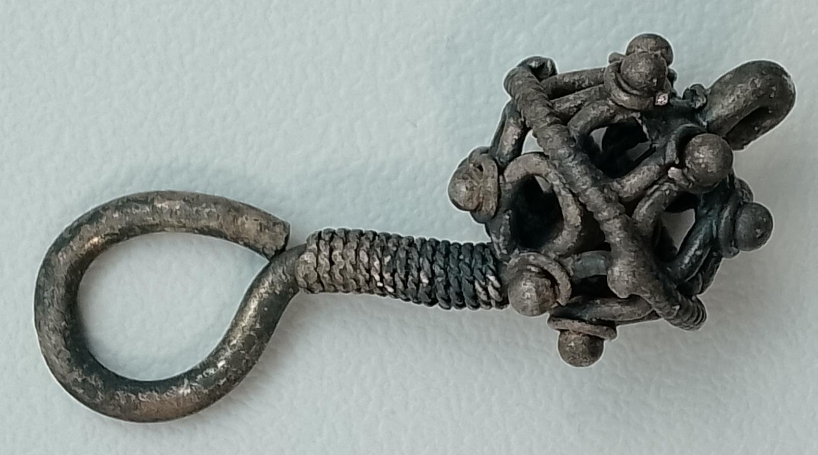 Учитывая то, что петля возле бусины, предположу, что это часть трёхбусенного височного кольца, обломанная.