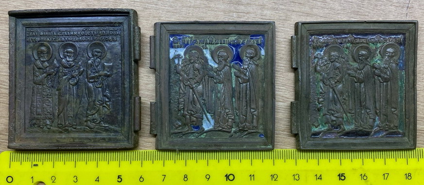 Предложу лот - Створки от складней триптихов Деисус 18в Выг эмали, бронза, литье. Бронза.