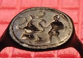 Перстень.16-17 век. Воин страж,охраняющий сосуд царя Соломона. Состояние, гладкая патина