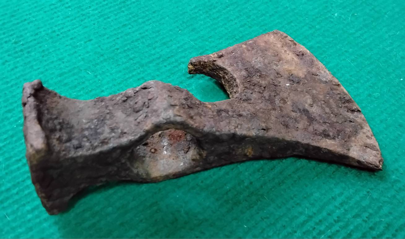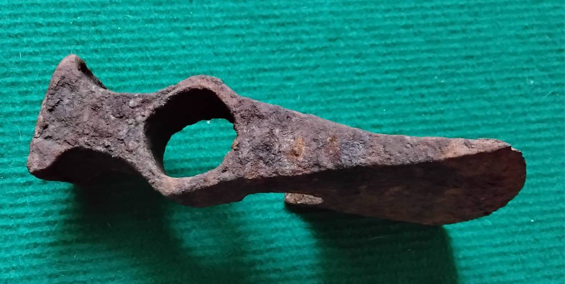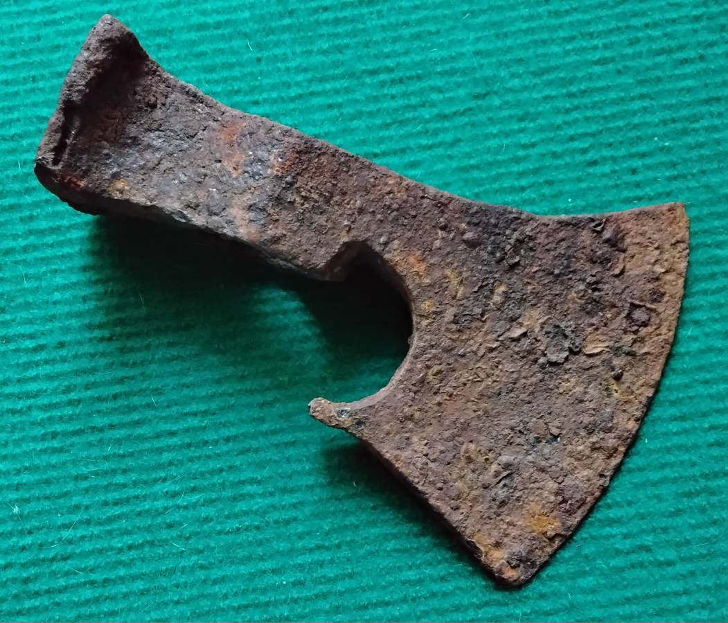Какой-то он странный. Не старый, что-ли. Я конечно, не специалист, по определению, но топоров и боевых, и рабочих, с 1-3ввнэ, по 12-13ввнэ, нашёл не один десяток. Без сомнений в контексте. Этот не такой, в общих чертах, как условно, средневековые. Возможно, конечно, что чей-то издалека, по дрёму, но обух странный, и вырез этот, тоже...