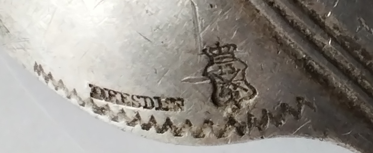 Приветствую.Пруссия,Дрезден,19 век.Проба лотовая,13,соответствует 813 метрической.