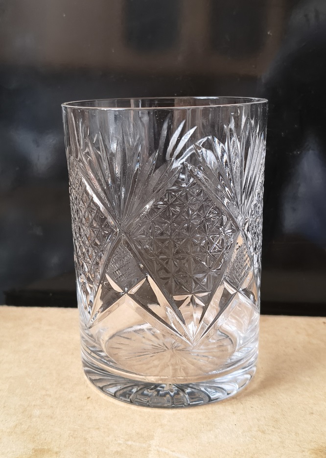 Нашелся вот такой наборчик: 6 хрустальных стаканов Дятьковского завода 1963-1973гг. в родной коробочке. Емкость стандартная - 250 мл. В использовании не были, все этикетки на стаканах сохранились. Сколько может стоить в сегодняшних реалиях? Вложенные эскизы изображений -------------------- ! Z !