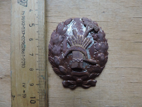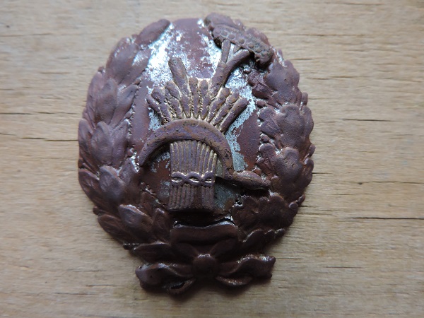 Да это "родной" оригинальный сбор и венка и знака, продотряд. Символика могла присутствовать на головном уборе. Коса или грабли неоднократно проходили отломанными, "где тонко там и рвется" тем более на копаном знаке.