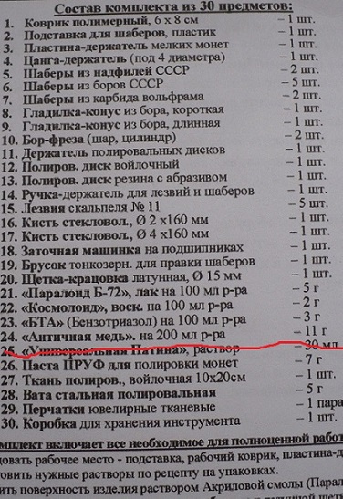 Продам новый набор для чистки монет Эталон 30 предметов. Все что в перечне есть, кроме бутылочки с раствором для патинирования. Цена 2300 руб. Отправлю посылкой или транспортной компанией. Оплата доставки с покупателя. Сообщение отредактировано Балатон: Jan 31 2026, 18:56 Вложенные эскизы изображений |