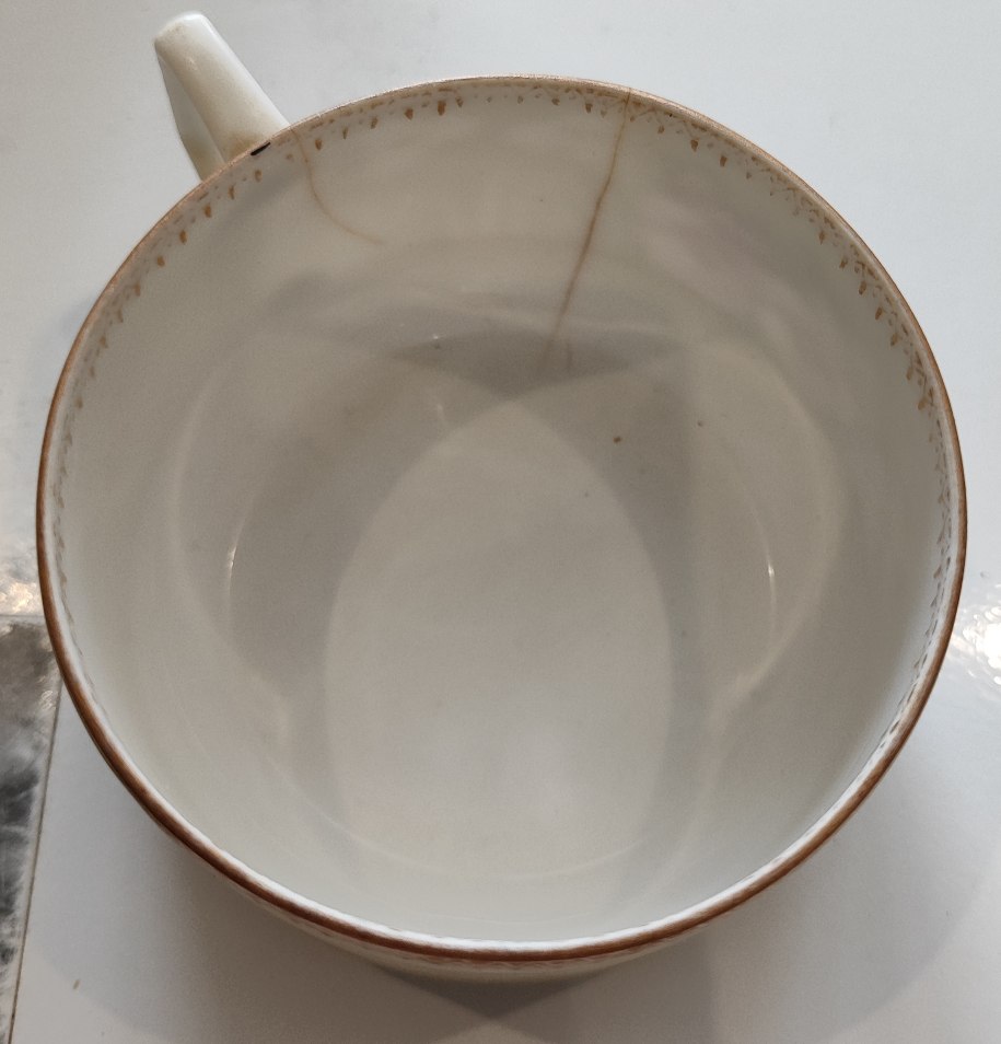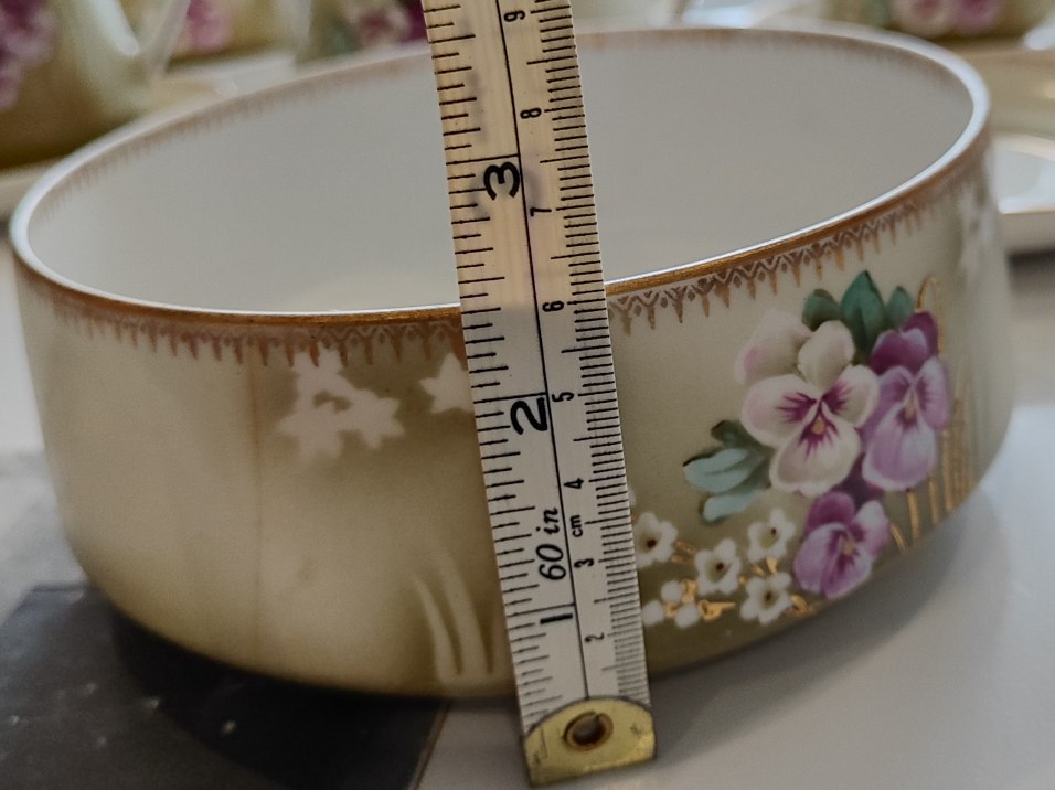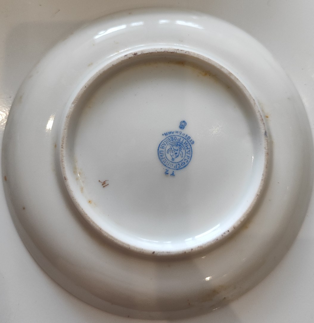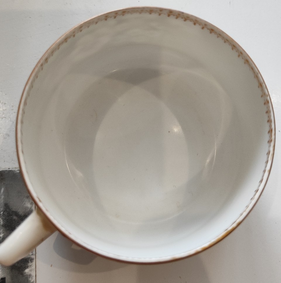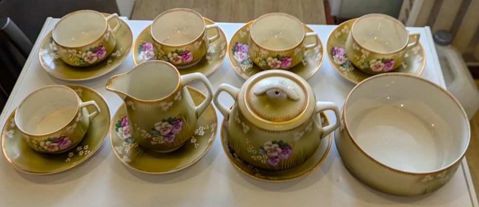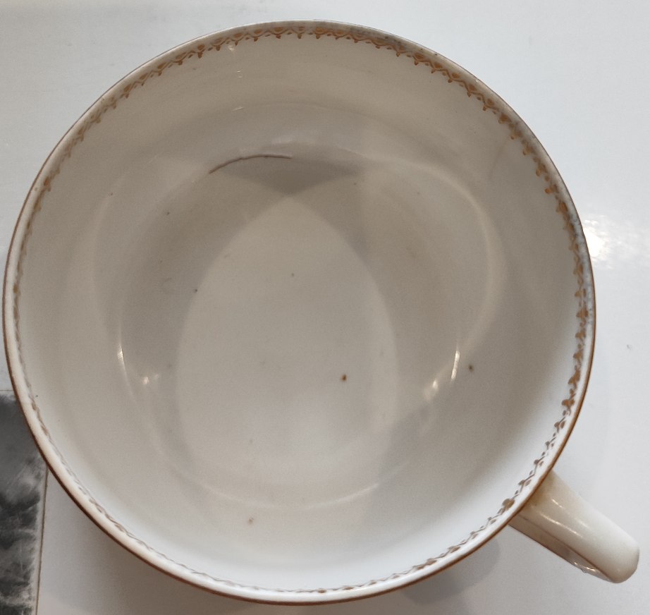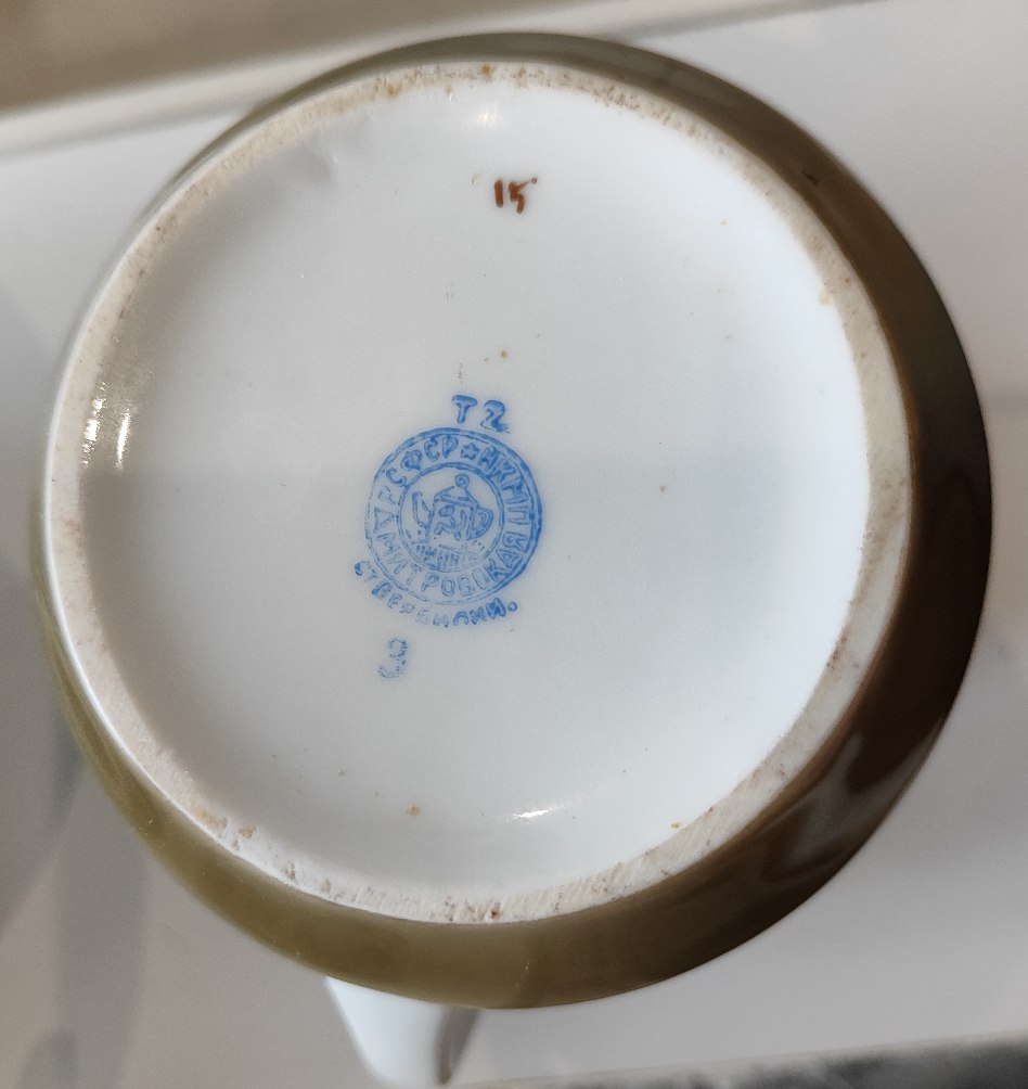 1934-40 год. Одной чайной пары не хватает. По остальным предметам сделайте описание- на скольких предметах есть дефекты ( сколы, трещины) и сколько предметов без дефектов. |