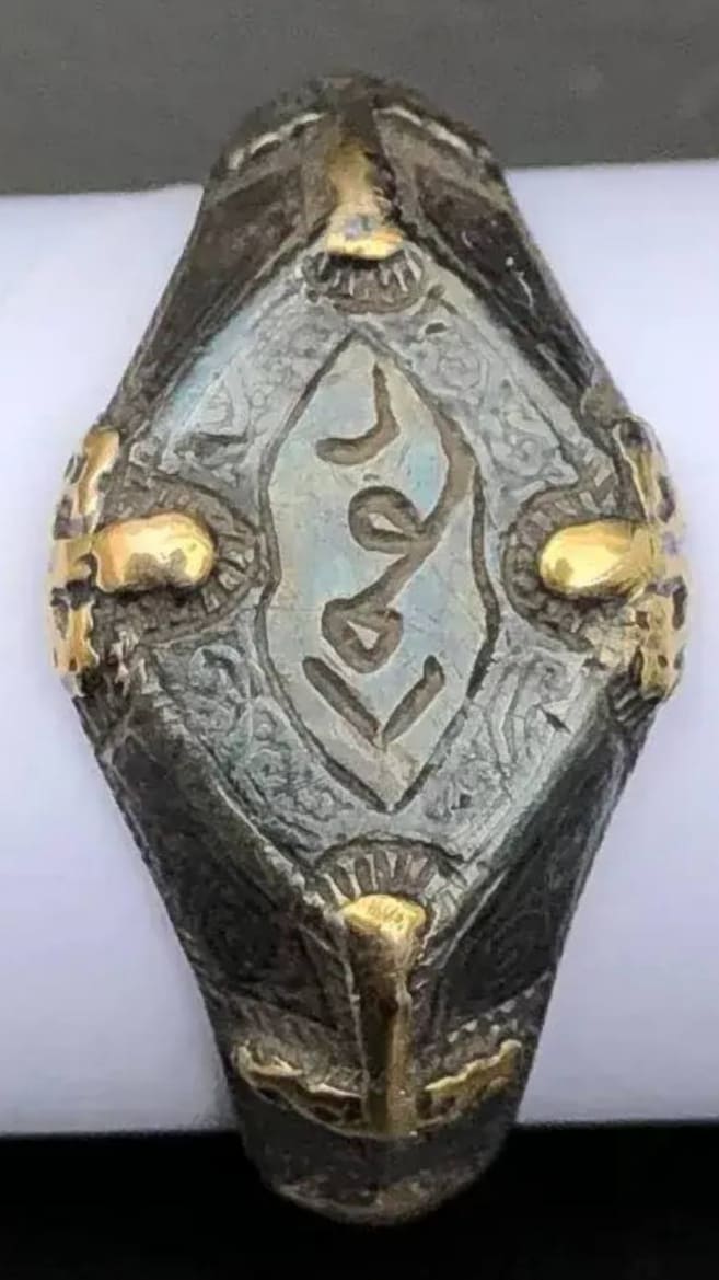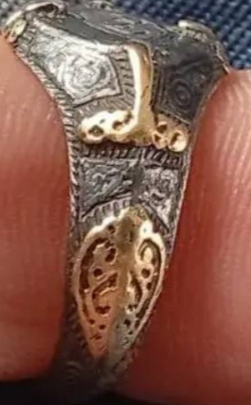 Подскажите по перстню, найден знакомым в Подмосковье. Очень похоже на серебро с золотом Вес 8 грамм Мне видится арабская вязь. Вложенные эскизы изображений -------------------- ЗА РУСЬ СВЯТУЮ И НЕРУШИМУЮ !!!