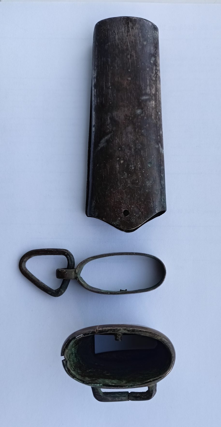 Добрый день нужна помощь . Прошу высказать своё мнение по даннымэкземплярам. Как вы считаете на каком виде хо стояли эти детали (ножны)и какого года образца. Хотелось бы услышать мнение коллег. Судя по размеру на порядок больше чем на ножны шашки образца 1881г. Заранее благодарен.