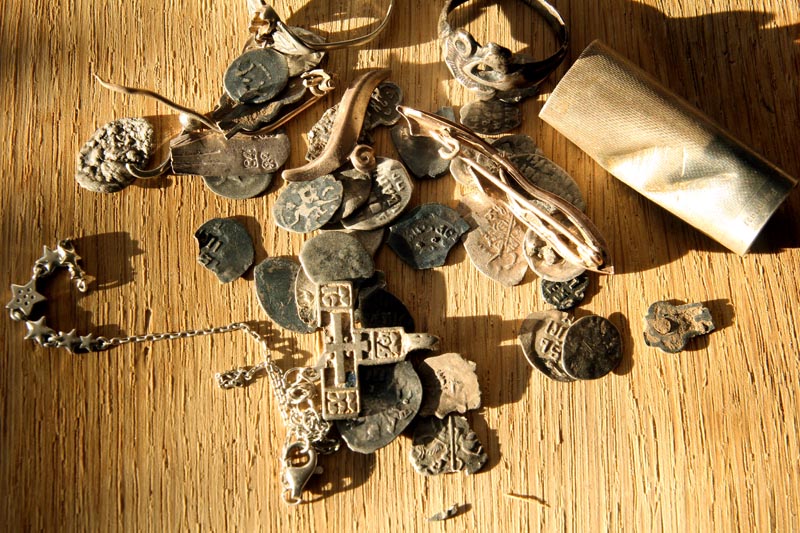 кучка серебра: неликвидные монеты, обломки украшений - пробы: 84, 875