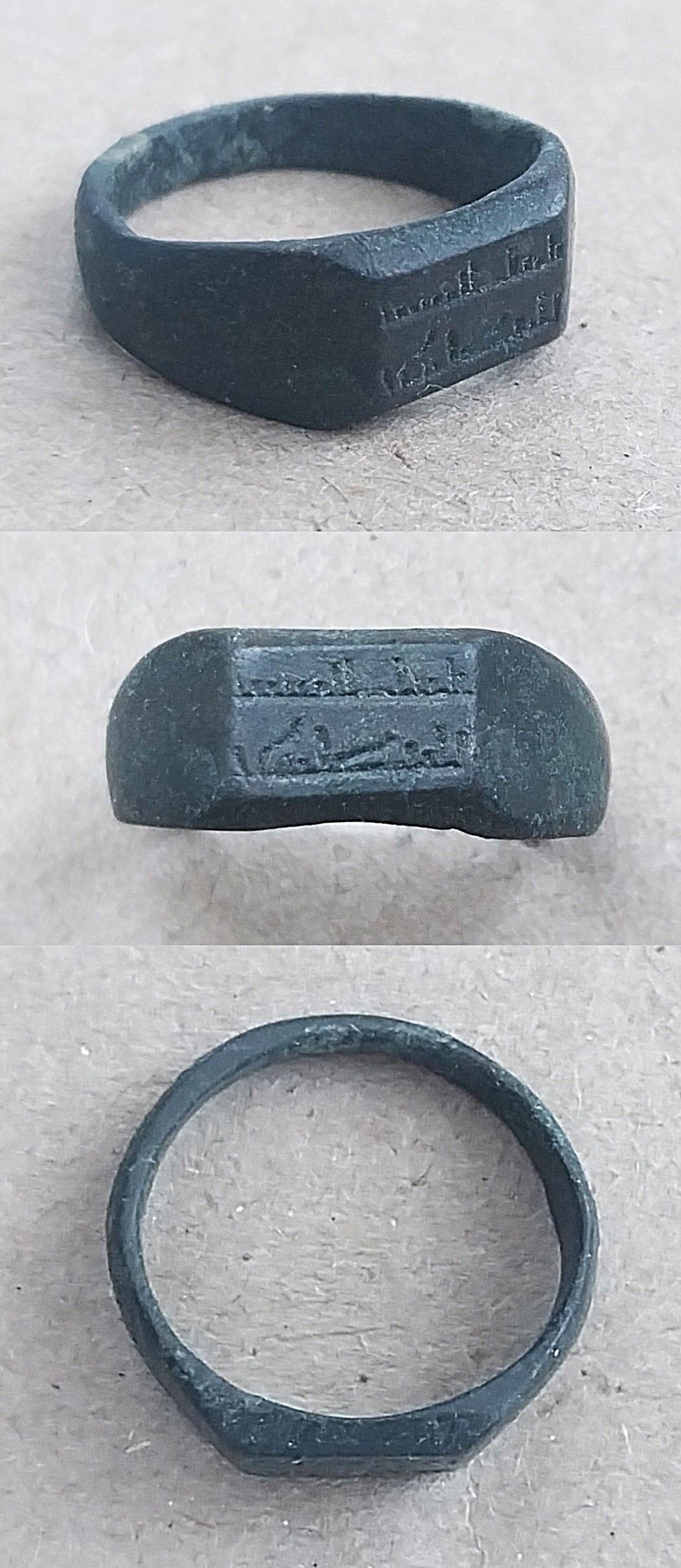 Предложу перстень с "арабской" надписью, внутренний диаметр 15-17 мм, состояние на фото.