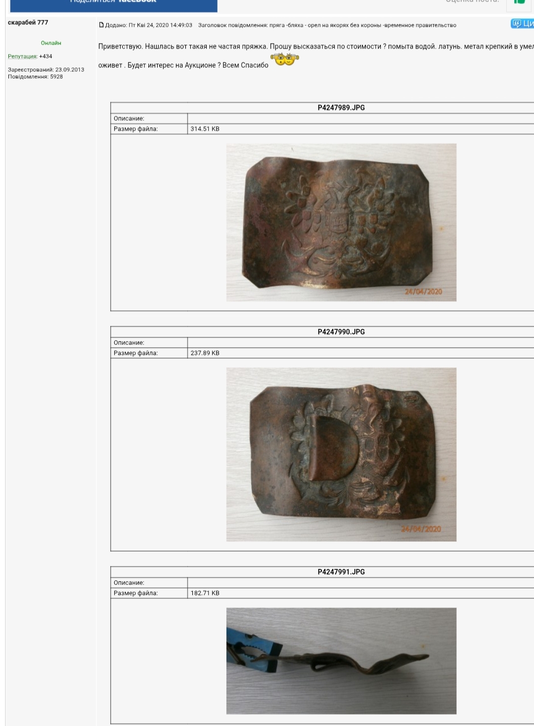 QUOTE(Субьект @ Feb 8 2026, 14:50) ф3 Это моя пряга.. Найдена в Мелитопольском районе. Продана за 300 евро. Таких пряг мне повезло найти две. Ещё две находил товарищ под ником Орёл с Виолити. Если память не подводит их прошло штук шесть через Виолити. Временное правительство . Их по всех форумах старался скупить коллекционер из Эстонии. Обсуждение было на Виолити таких пряг. Пряжки очень редкие . |