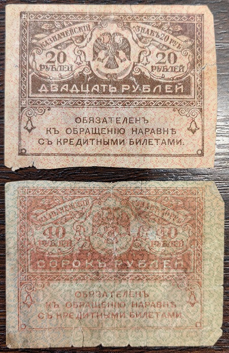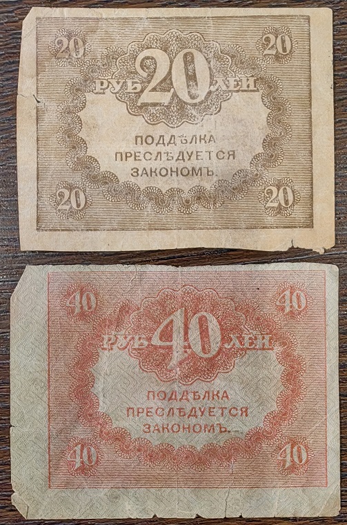 Предложу 2 банкноты 20 и 40 рублей 1917 года (Керенки). Отдам для изучения, предложившему наивысшую стоимость залога. Время изучения не ограничено. Старт: 50 руб. Шаг: 30 рублей и более блица нет. Окончание в 22.00 по Москве 14.02.2026. Антиснайпер 10 мин. многократно. Пересыл только по РФ на покупателе +150 руб. Ответственность за работу почты не несу, качественную упаковку гарантирую! Предоплата 100% на карту СБ в течении трех суток после завершения аукциона. Ставки от участников с нулевой репутацией не принимаются. Спасибо и удачных торгов! Вложенные эскизы изображений -------------------- Если я выиграл Ваш лот, напомните мне пожалуйста в личку! Спасибо!