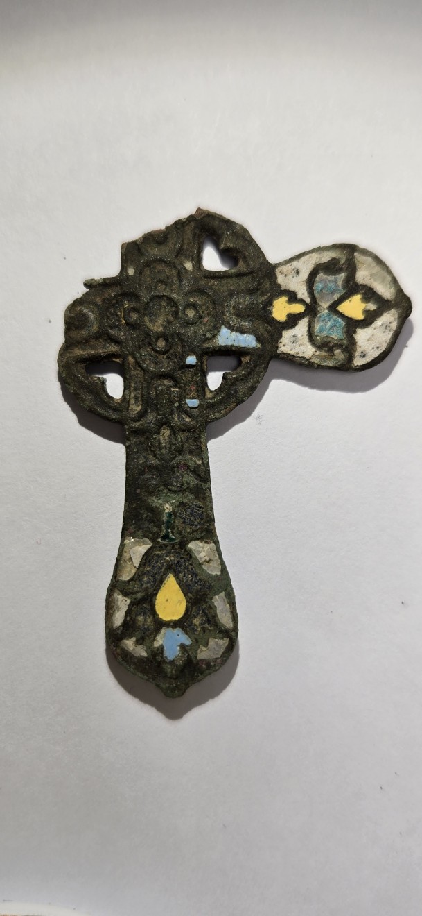 Если не сложно сделайте. пожалуйста, отдельные фото обломка креста с точечной эмалью, с обеих сторон, и укажите регион обретения.