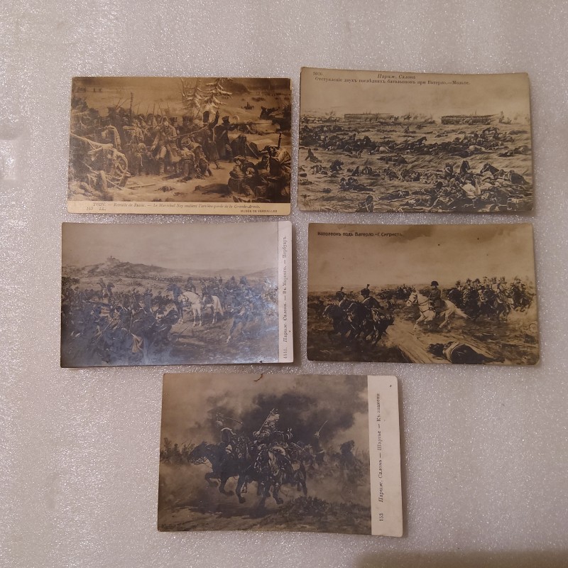 лот из 5 почтовых открыток периода ри с батальными сценами войны 1812 года,Наполеон