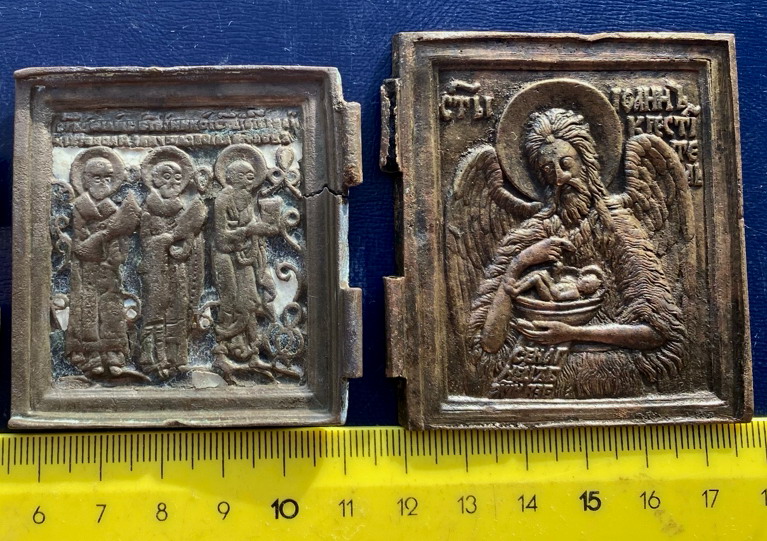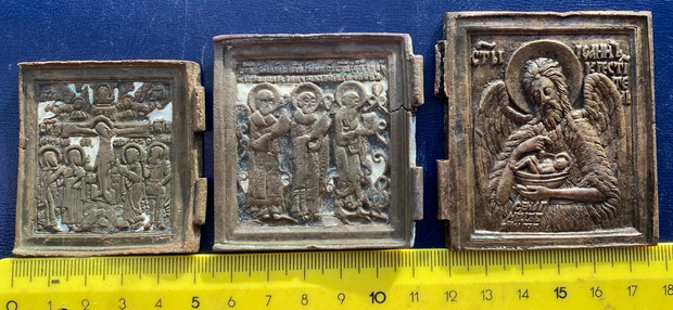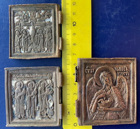 Предложу лот -Створки от складней триптихов праздники, Деисус 18в Выг эмали, бронза, литье.