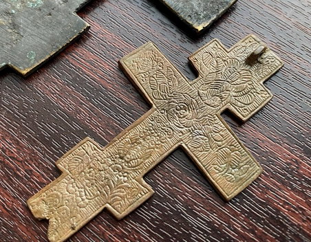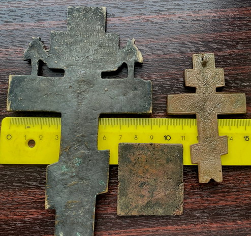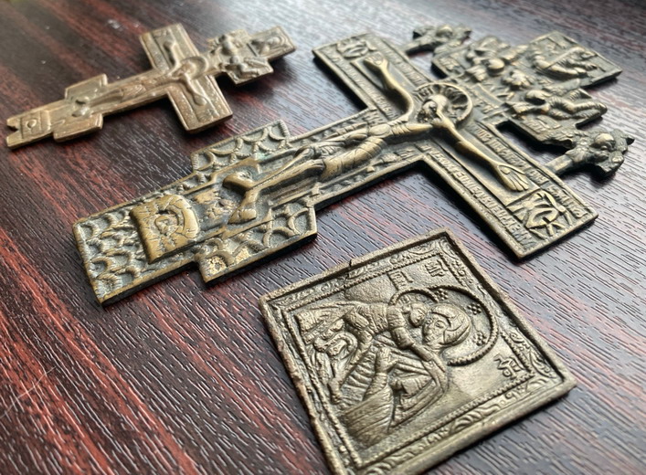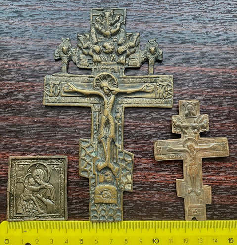 Предложу лот - Два Киотных Креста молитва херувимы 18в рисунок, икона Бог Владимирская 18 Состояние на фото.