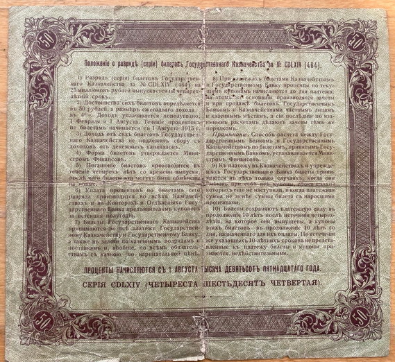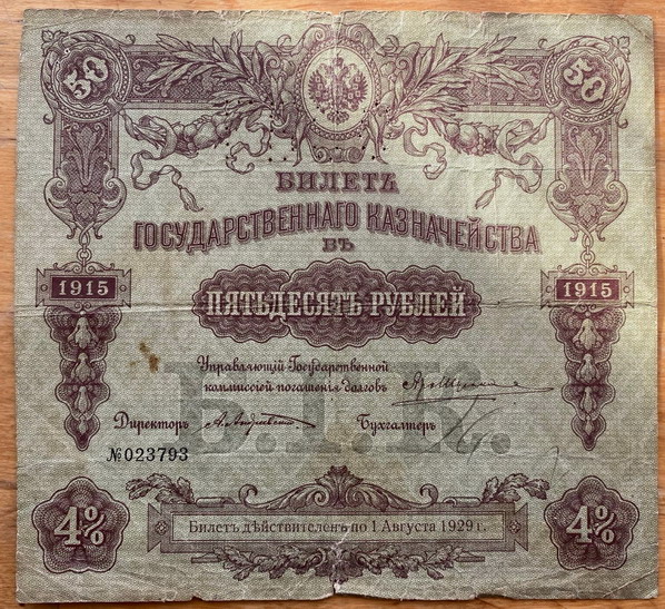 Предложу лот - Билет государствегного казначейства 50 рублей 1915г. ГБСО