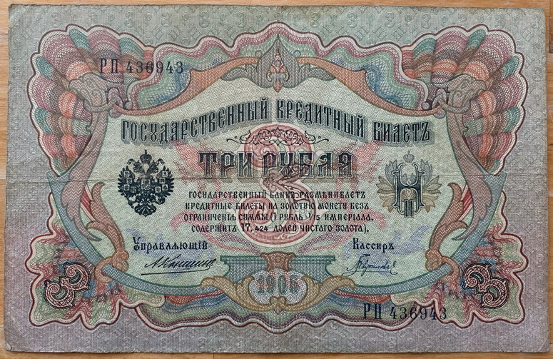 Предложу лот - 3 рубля 1905 Коншин Афанасьев не частый предмет для коллекции.