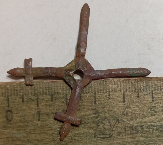 Всем добрый вечер! Попались вот такие мечи, латунь, штамповка. Подскажите, современное творчество или от какого-то знака РИА? Похоже, как "За службу на Кавказе", но там сколько их видел все цельнолитые были. В таком состоянии в сборный лот или можно отдельно попробовать выставить? Заранее благодарен!