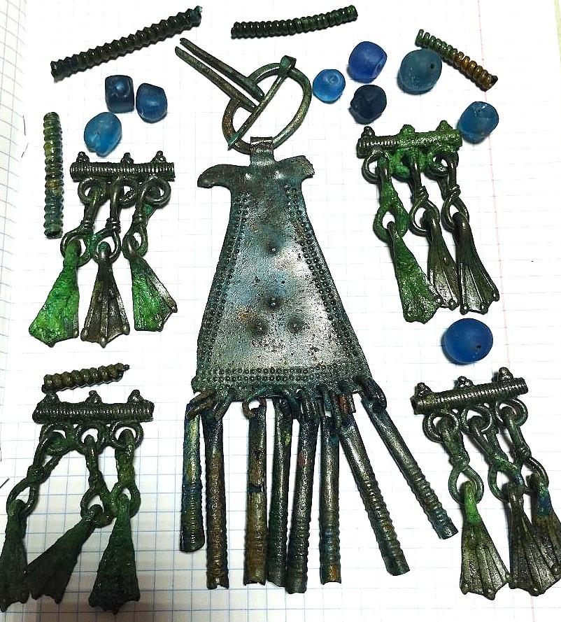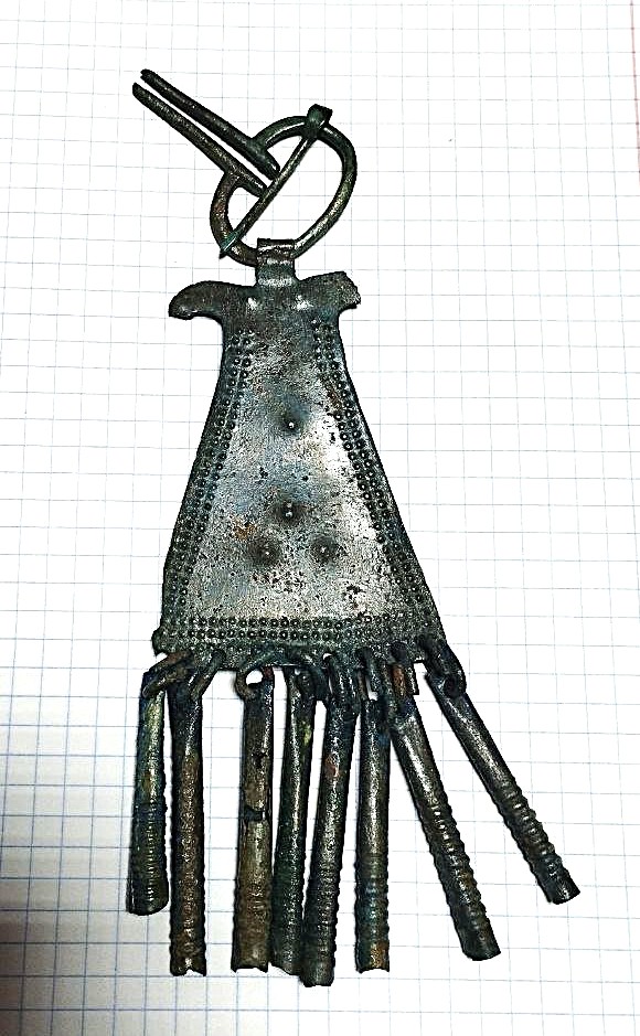 Лот: 1.Большая сложносотавная фибула-сюльгама с трапециевидной привеской (9-10 век, Рязанская) 2.Ожерелье из шумящих пронизок и бусин синего цвета 9-10 век. Состояние по фото. Старт: 100 рублей Шаг: Любой от 50 р. Антиснайпер: 10 мин. многократно Пересыл: только посылкой почтой России 500 р. 100% предоплата карта Сбербанк Предмет представляется во временное пользование предложившему наивысшую стоимость залога за предмет Предмет передаётся исключительно в целях изучения, без возврата залога ,срок изучения на усмотрение победителя. -------------------- "Я не пойму: дурак я или витязь?"