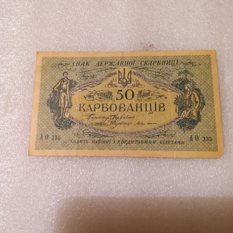 не частая банкнота номиналом 50 карбоаанцев 1918 год