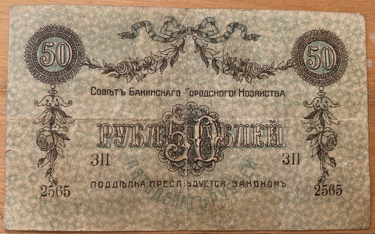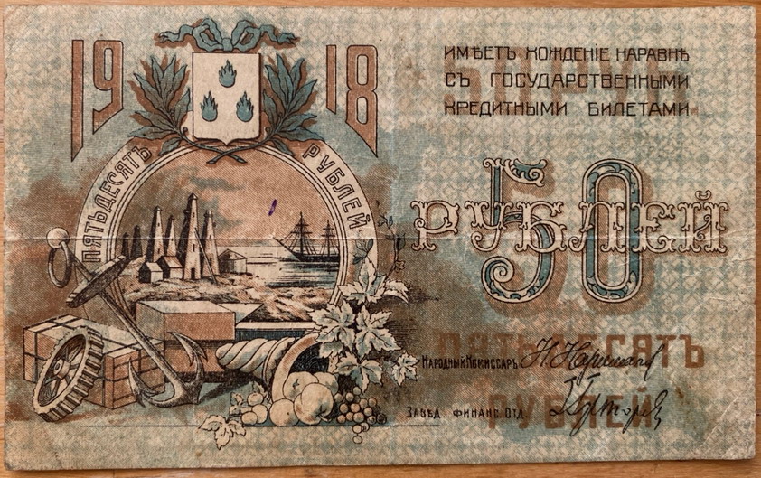 Предложу лот - 50 рублей 1918 г. Баку Совет Бакинского гор. хоз .Состояние на фото.