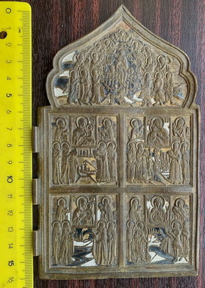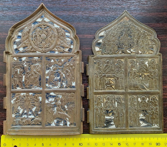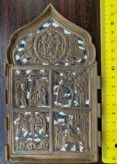 Предложу лот - Две створки от складня Праздники эмали, 19в, бронза. Размер на фото.