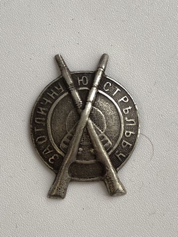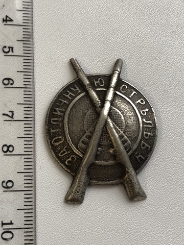 Знак За отличную стрельбу, мельхиор, мосинские винтовки, конец одного ствола реставрация. Состояние на фото, внимательно смотрим, все вопросы до ставок.