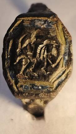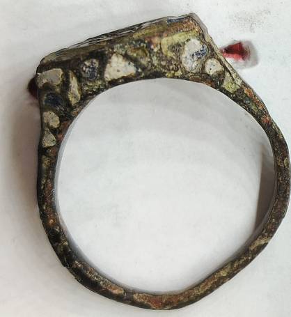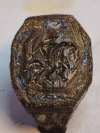 Вот такое изделие. Обычно вставки в такой тип стекло литьё штамповка. А тут похоже всадник воин резан штихелем. Видел ли кто то подобное ?