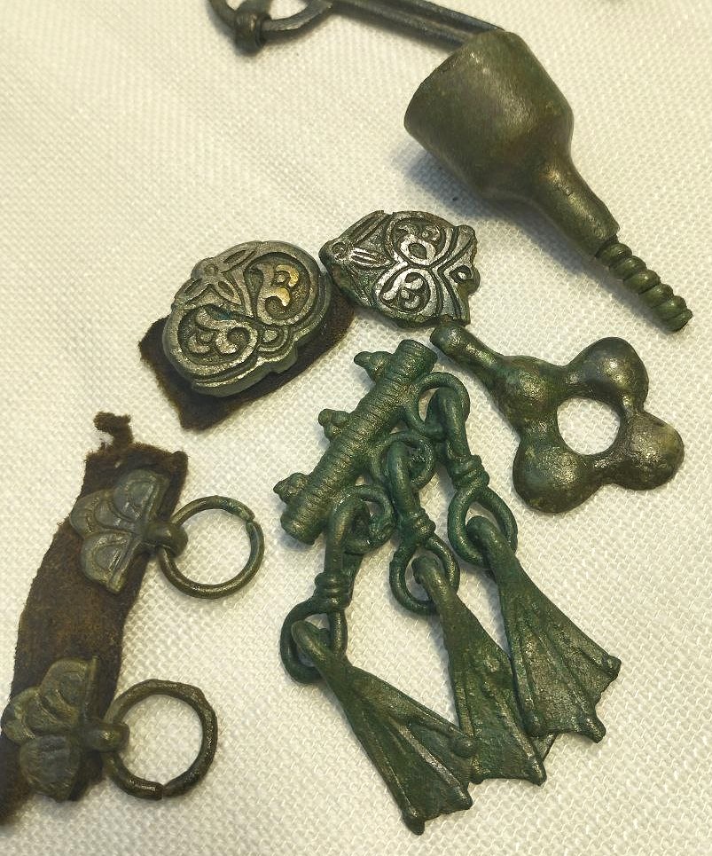Лот домонгол (8-10 век): Шумящие привескии ожерелий различного типа, поясные накладки салтовского и мадьярского типа на на родной коже, крестовидная привеска, большой бубенчик рабочий, бутыльчатые привески, накосники, усатые фибулы - сюльгамы. Старт: 100 рублей Шаг: Любой от 50 р. Антиснайпер: 10 мин. многократно Пересыл: только посылкой почтой России 500 р. 100% предоплата карта Сбербанк Предмет представляется во временное пользование предложившему наивысшую стоимость залога за предмет Предмет передаётся исключительно в целях изучения, без возврата залога ,срок изучения на усмотрение победителя. -------------------- "Я не пойму: дурак я или витязь?"