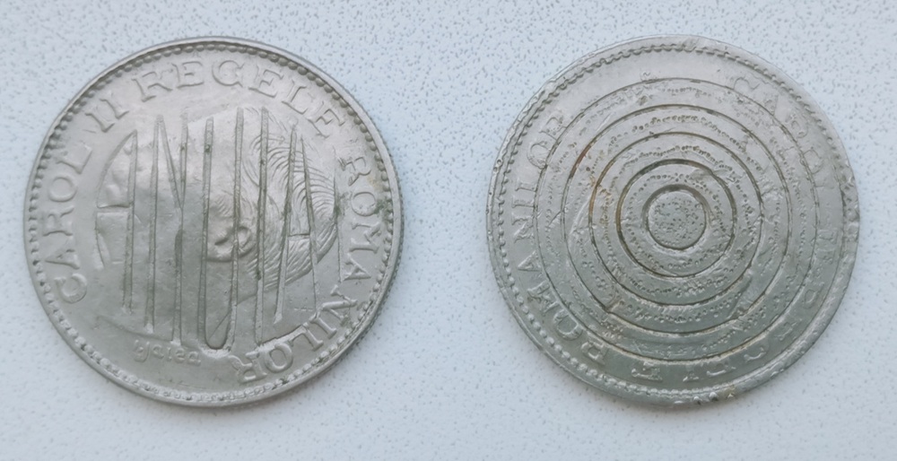 Германия во время войны изымала металл для нужд армии. Из Румынии монеты вывозили вагонами. Это обычное гашение, еще бывали с дыркой центре и еще какие то не помню. так что это гашение мон двора.