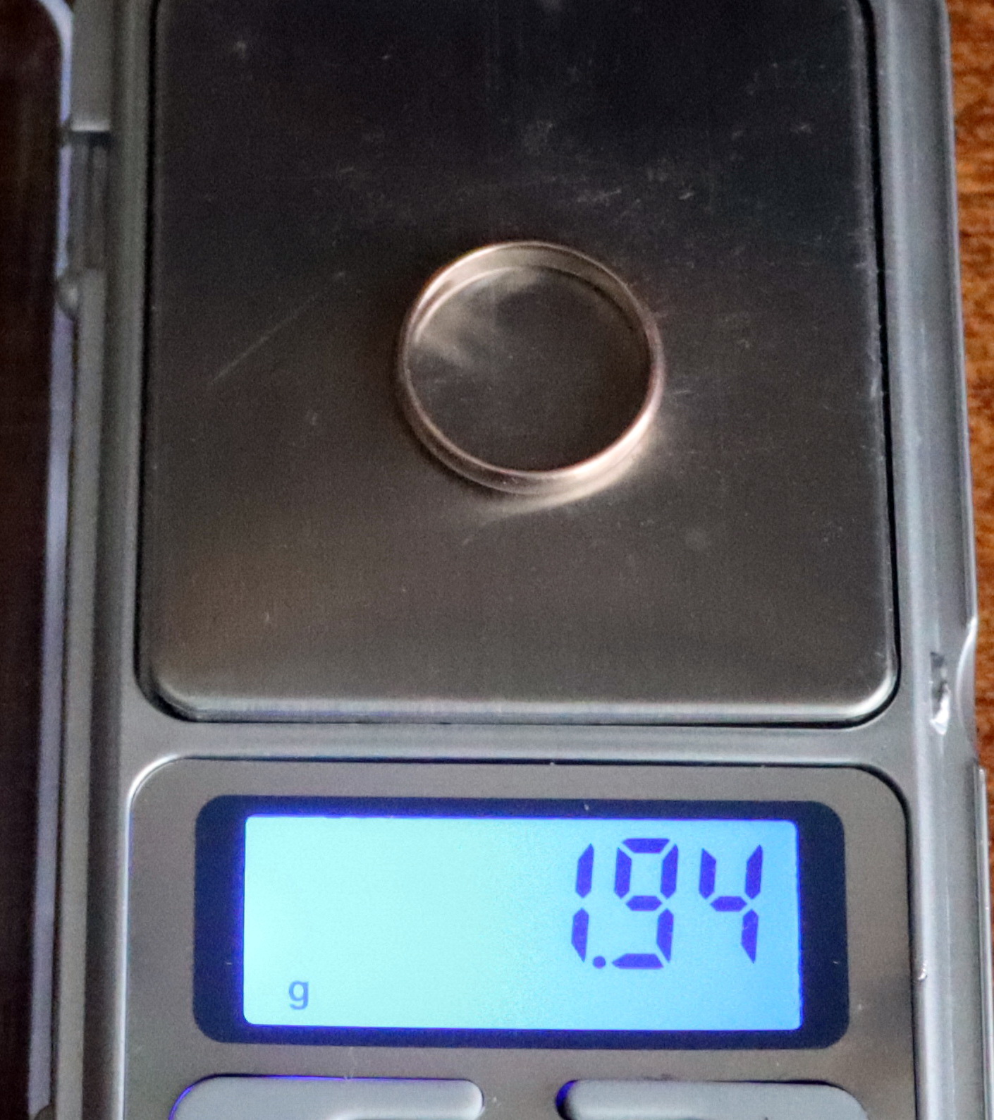 1 ставьте на весы пластиковый стаканчик с водой из чайника комнатной температуры (не очень много воды, чтоб весы не зашкалили) 2 нажимаете тара (но весах нули появятся) 3 опускаете на тонкой нити кольцо в воду полностью что бы оно не касалось дна и стенок 4 записываете результат взвесить лучше несколько раз что в сухом состоянии что в мокром(не забывайте вытирать бумажной салфеткой и нажимать тару между измерениями), весы необходимой точности у вас есть. пишите измерения тут, я вам посчитаю и дам результат - какие пробы могут быть -------------------- Автор андроид-приложения "Gold Tester", основанного на принципе гидростатического взвешивания.