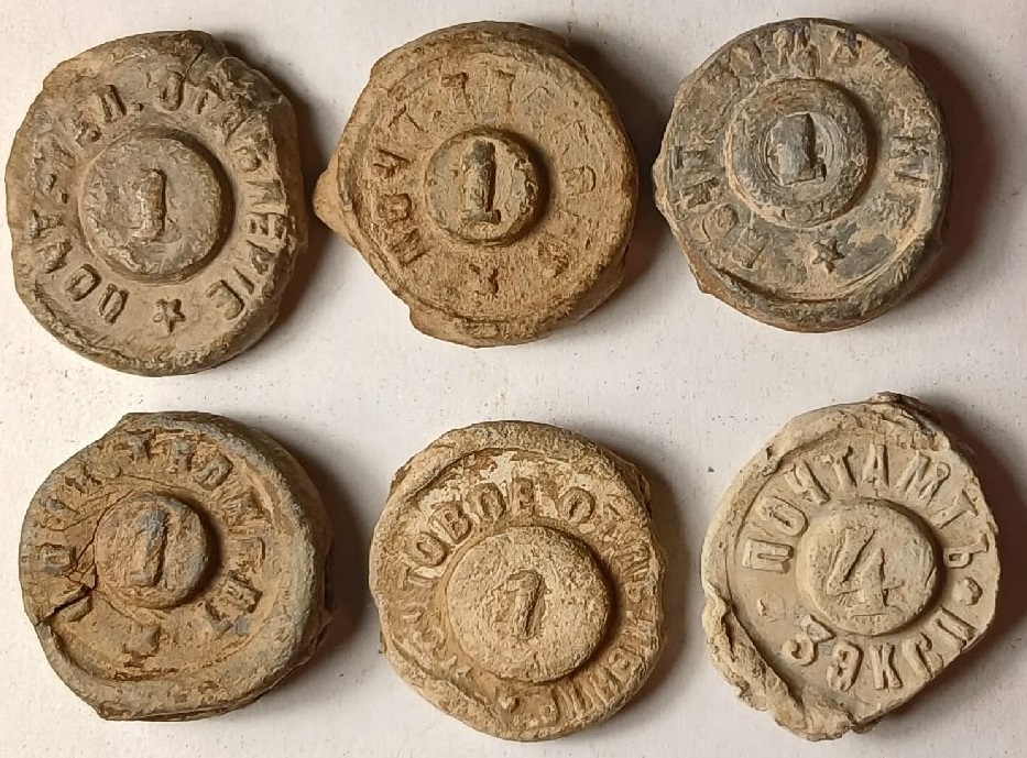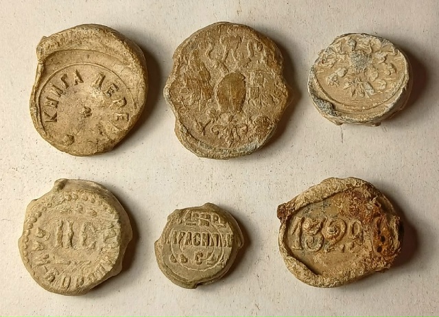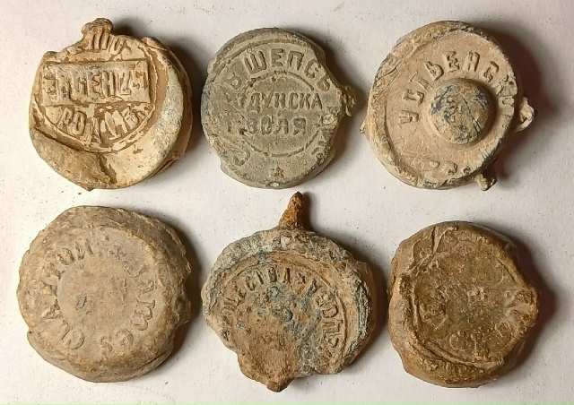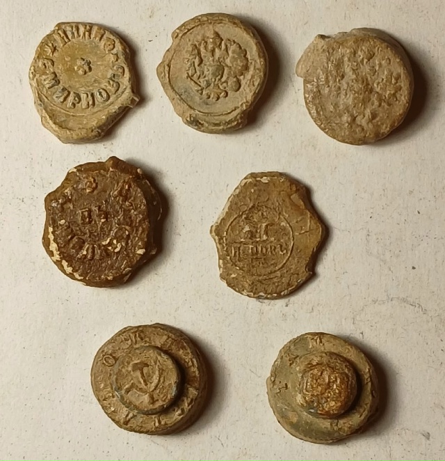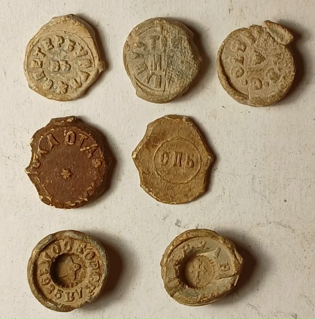 Почтовые (они поздние, почтово-телеграфные), плохо читаемые и только с цифрами - неинтересны. Интересны могут быть, например, пломба Дулевской фабрики Кузнецова + местные - напр., Перлов в Архангельске и Иконниковы. Еще Бай-Бородины и Красильщикова.