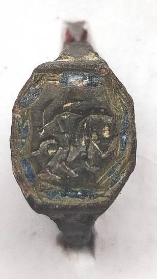 Перстень соль вычегодских эмалей,17 век. На щитке изображение воина на коне,всадник. Изображение резано штихелем ( по стеклу ? по камню ? ). Старт 700,шаг 100, антиснайпер, почта на получателе.