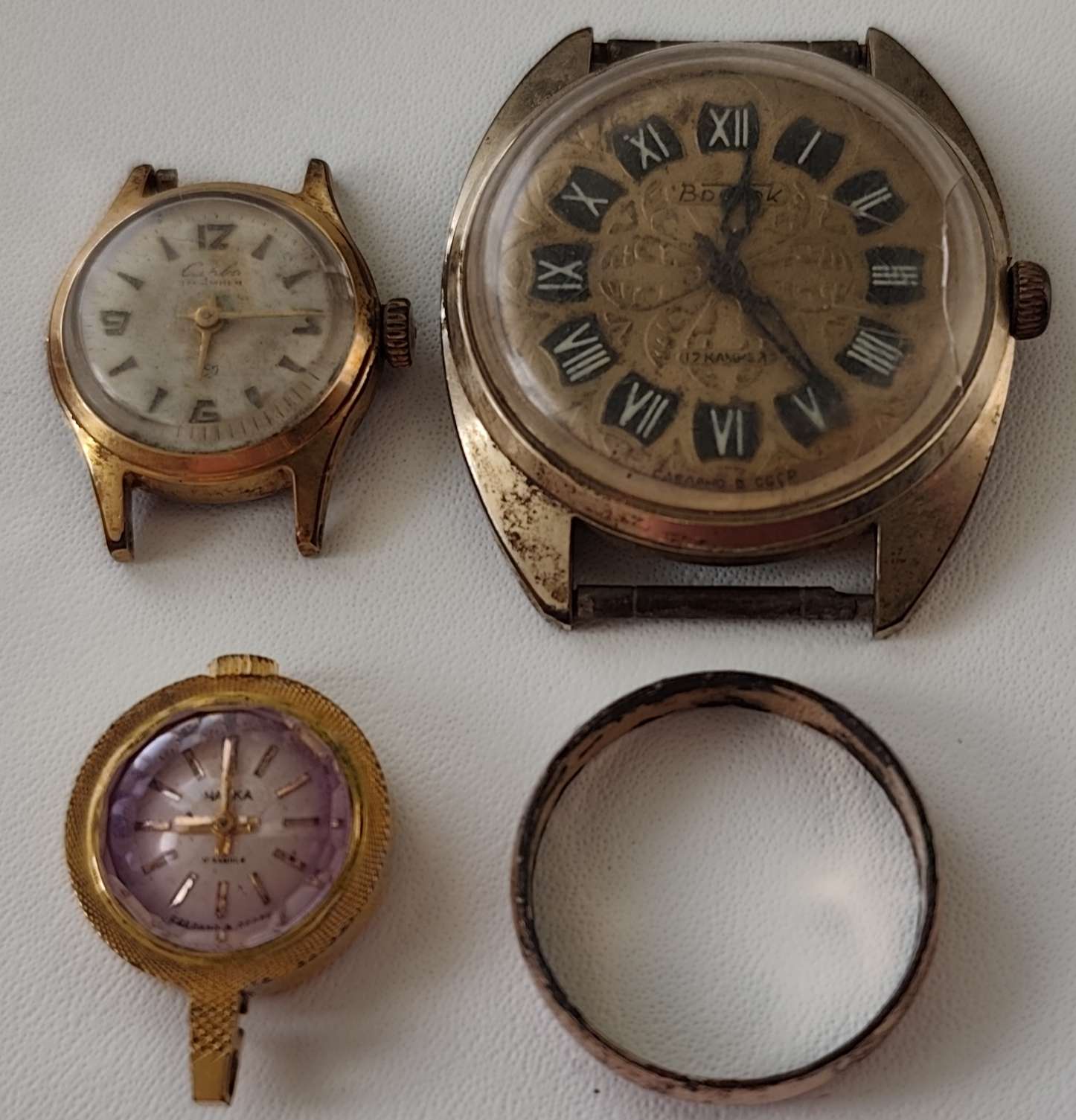 3е позолоченных часов + обручальное кольцо.