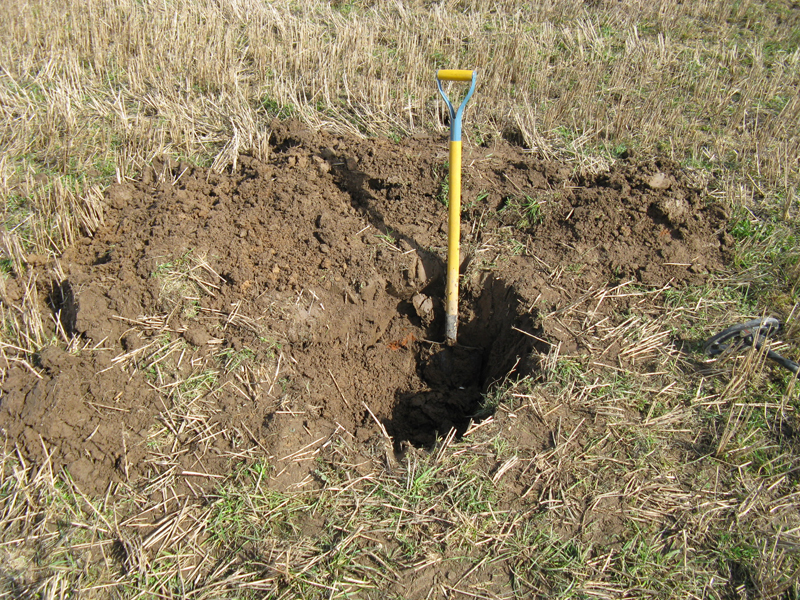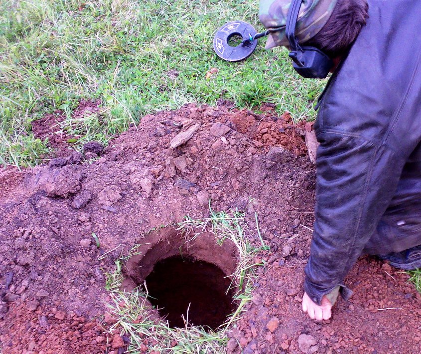 На прошлой неделе ловлю хороший цвет.сигнал, раскопал яму шириной в метр где то, в центре нашел обруч от бочки, сигнал дельше есть. Копаю предаваясь мечте о кладе...выкапываю носик от фарфорового чайника. Яма между тем стала в ширину метра полтора и в глубину по колено, плюс ко всему начала заполняться водой. Плюнул на всё, закопал(!) и пошел к товарищам по полю. Расказал, они форменно меня обгадили, сказали что раньше закапывали целые сервизы...нах я их слушал? Втроем выкапали яму еще больше чем была, нашли пару гвоздей и всё таки стало понятно, что сервиз растащило трактором при перепашке поля... а жаль.